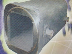 扁钢锭模是实用新型的一种改进的钢锭模,其特征是在扁钢锭模的模体顶端对应密合安装一个带二个或多个圆锥形排气口的弧面模盖,当炽热钢水浇注入模体内时,炽热的上升气流将模体内的常温空气从排气口排出,当钢水进入弧面模盖的空间中,炽热的气流迅速地预热,加温并储热于模盖,钢水进入圆锥形排气口中时,钢水析出的游离渣集中平敷于排气口上部起到封顶保温的作用